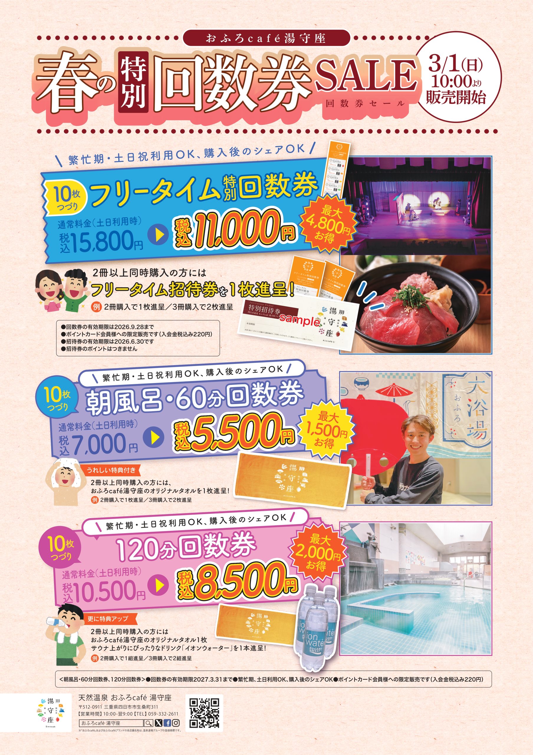 info2026.02.24 【2026年3/1(日)10:00~】春の特別回数券セール 前の記事 一覧に戻る 禁忌事項prohibited matter 下記該当する方の入館は固くお断りしております。他のお客様にご迷惑となると当施設が判断した場合には、退館していただくことがあります。館内でお見かけした場合には、即刻退館していただきます、その際の入館料の返金はできません。 泥酔状態の方 刺青・タトゥのある方、暴力団並びにその関係者とみなされる方 皮膚に疾患のある方、また他に伝染する疾患をお持ちの方 当施設への飲食物の持込